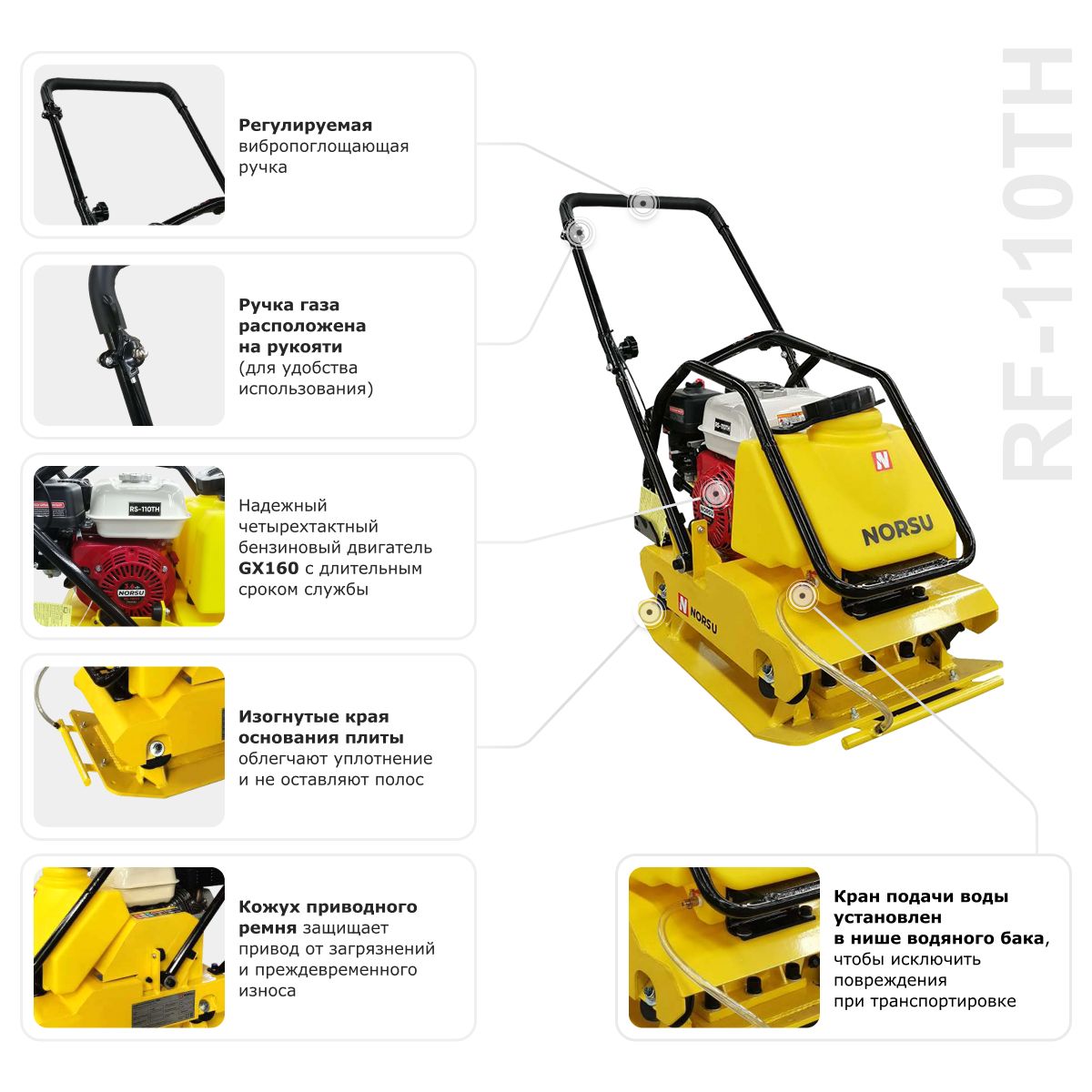 Виброплита бензиновая прямоходная NORSU RF-110TH (колесный комплект, бак для воды) в Москве