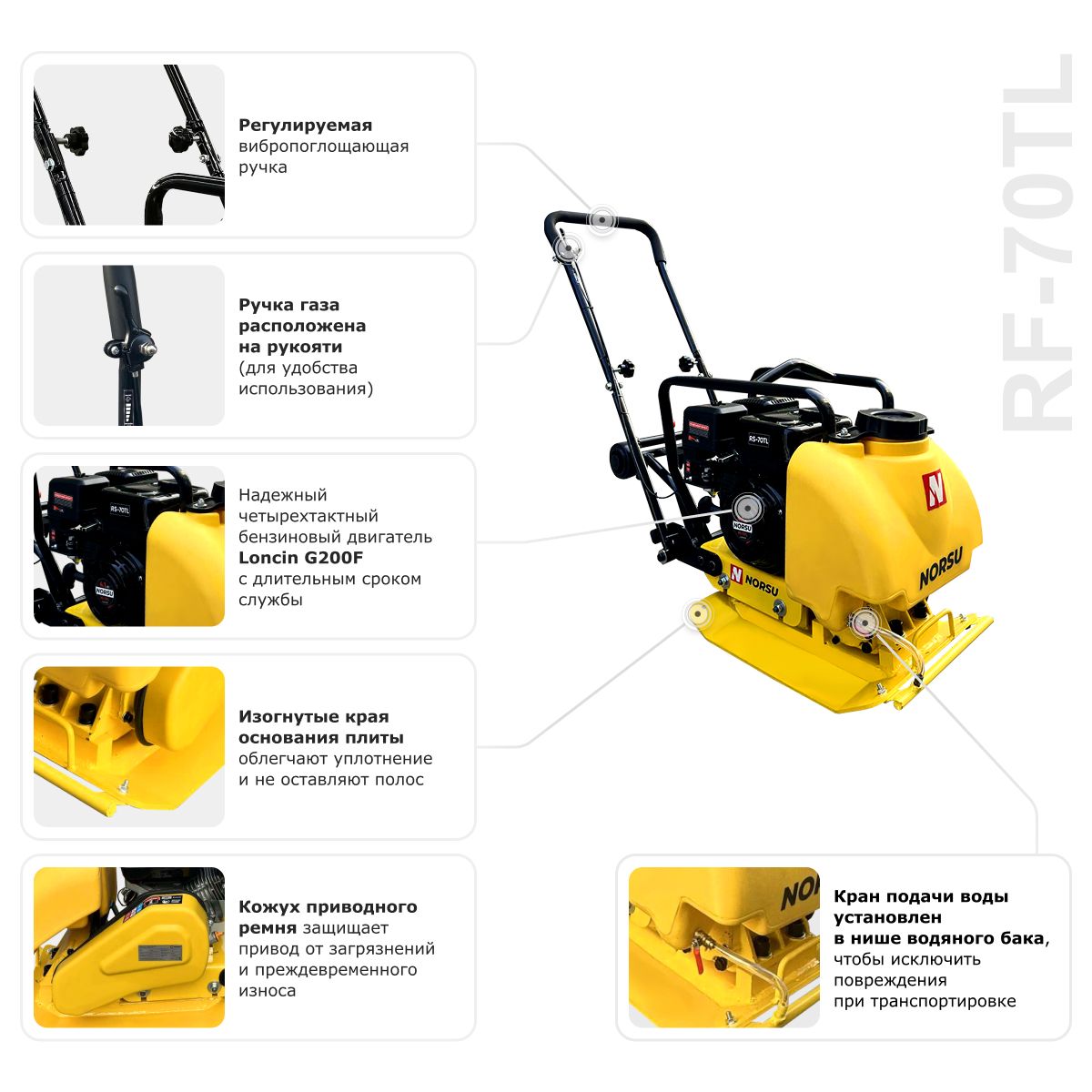 Виброплита бензиновая прямоходная NORSU RF-70TL (колесный комплект, бак для воды) в Москве