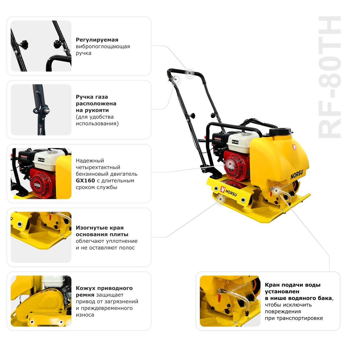Виброплита бензиновая прямоходная NORSU RF-80TH (колесный комплект, бак для воды) в Москве