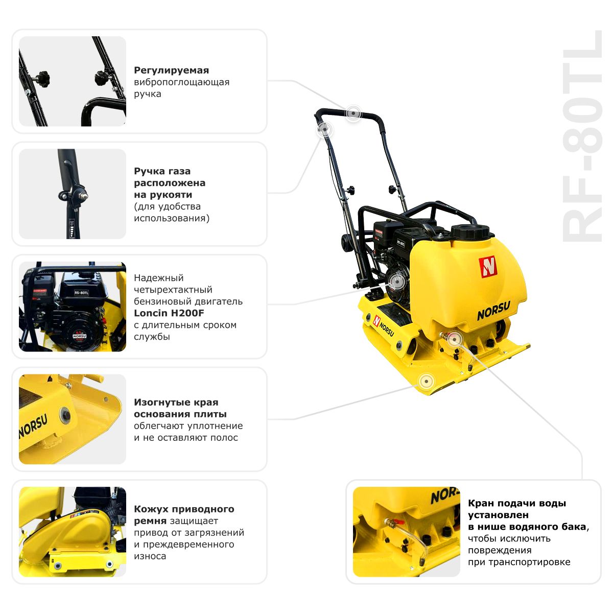 Виброплита бензиновая прямоходная NORSU RF-80TL (колесный комплект, бак для воды) в Москве