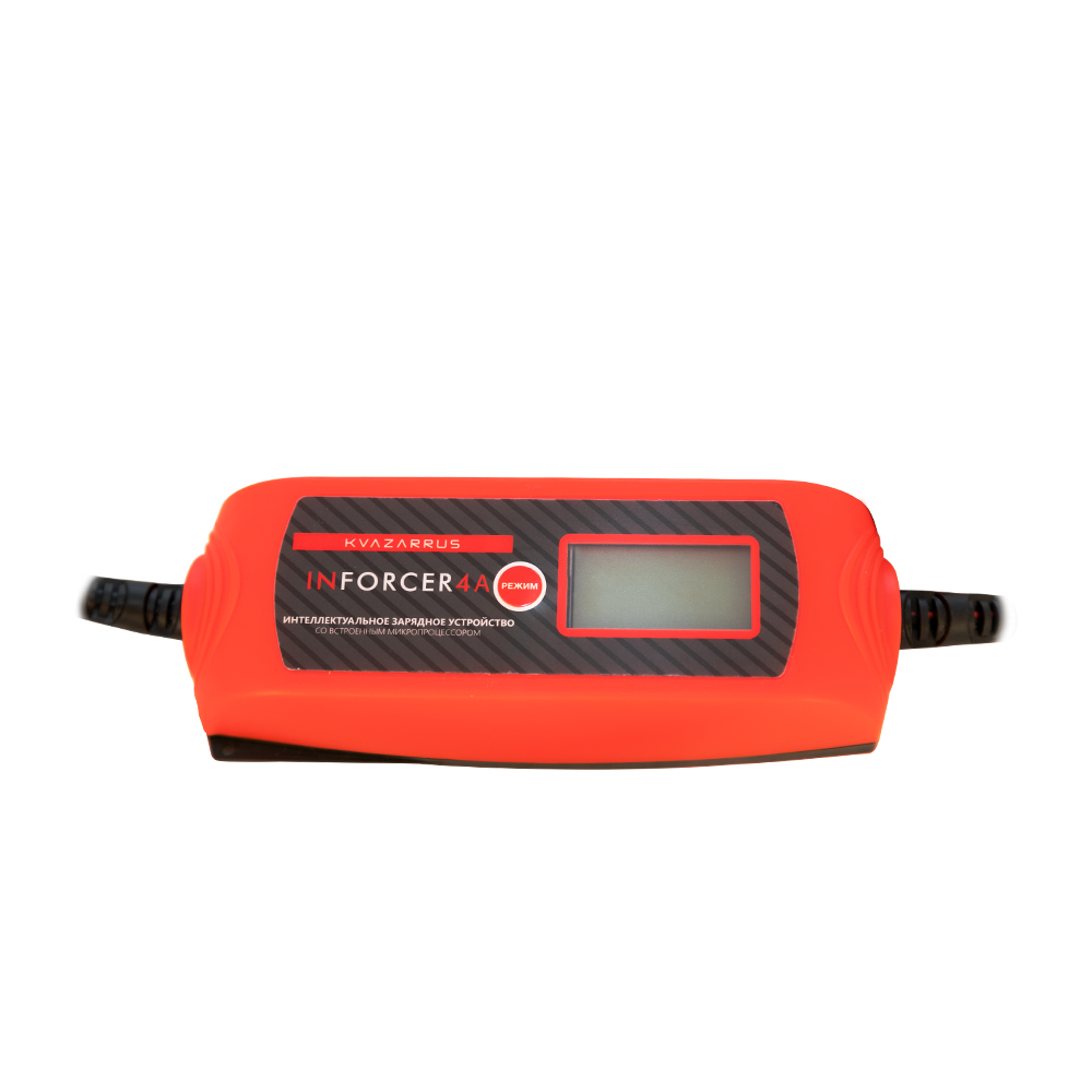 Интеллектуальное портативное зарядное устройство KVAZARRUS InForcer 4A со встроенным микропроцессором предназначено для подзарядки аккумуляторов автомобилей, мотоциклов, катеров и других транспортных средств, где используются свинцово-кислотные, гелевые аккумуляторы и их аналоги. Устройство подключается к стандартной розетке 230 вольт и рассчитано на зарядку батарей с напряжением 6, 12 В. InForcer 4A оборудовано не только автоматическим определением напряжения и состояния батареи, но и полностью автоматическим 9-ступенчатым методом заряда, включающим в себя этапы восстановления (десульфатации), основного заряда, поддержания заряда. LED-дисплей показывает данные по напряжению, силе тока и типу заряжаемого аккумулятора. Корпус устройства надежно защищает электронику от попадания пыли и влаги и имеет степень защиты IP65.ДЕСУЛЬФАТАЦИЯ: При десульфатации микропроцессорное управление автоматически определяет состояние АКБ, после этого устройство проводит восстановление, очищение, лечение аккумуляторной батареи в случае необходимости.НЕБОЛЬШОЙ ВЕС: Портативное зарядное устройство отличается компактными габаритами и небольшим весом меньше 1 кг, что позволяет его удобно хранить и, при необходимости, всегда иметь при себе.ПРЕИМУЩЕСТВА:Автоматическое определение типа и напряжения АКБ7 этапов зарядкиРежим десульфатации АКБLСD-дисплей с подсветкойВстроенный амперметрРабота в полностью автоматическом режимеКонтроль зарядки встроенным микропроцессоромВозможность выбора программы зарядкиКомплексная защита устройства и заряжаемых АКБЗащита от перезарядаЗащита от перегреваЗащита от несоблюдения полярностиЗащита от короткого замыканияЗащита от перегрузкиПортативность – компактные размеры и лёгкий весВысокая степень защиты IP65КОМПЛЕКТАЦИЯ: Зарядное устройство в сборе с токопроводами – 1 шт.; Инструкция по эксплуатации + Гарантийный талон – 1 компл.